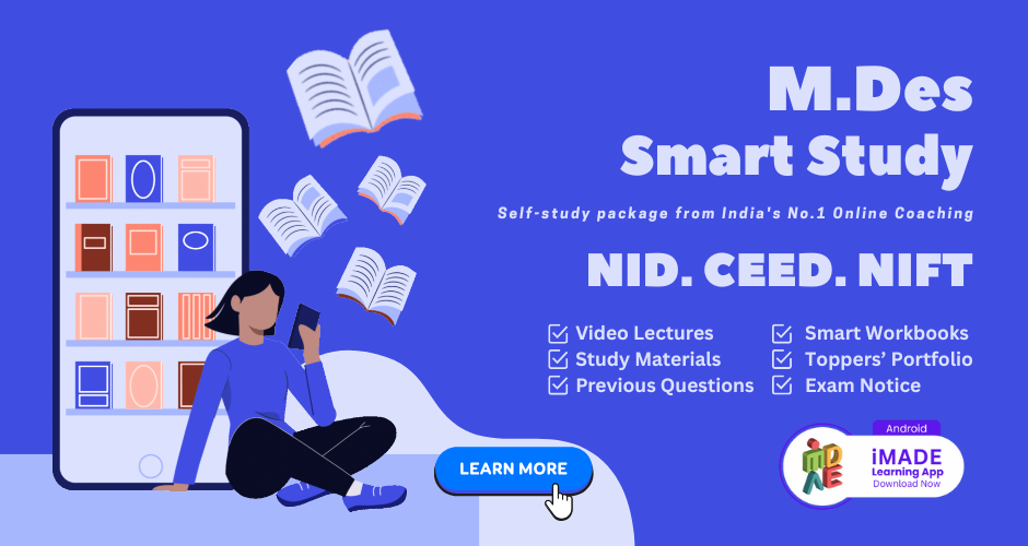 iMADE is offering Masters of Design (M.Des) Coaching since past 11 years having 210+ students studying in IIT, NID, NIFT, IIITDMJ, SPA and other colleges. Top faculty, well-researched study materials, self-paced course, offering short-term and long duration courses.
